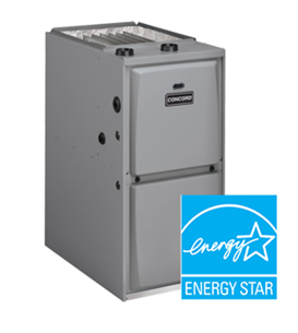 Concord Gas furnaces are available from 35,000 BTU through 125,000 BTU, in efficiency ratings from 80 to 95%, with two stage heating, variable speed motor for greater comfort and better airflow that matches the air conditioning.